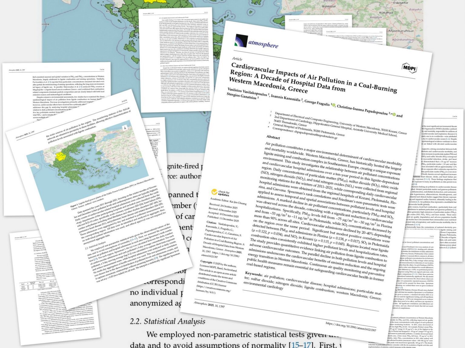Η Δυτική Μακεδονία, μια περιοχή που για δεκαετίες αποτέλεσε τον ενεργειακό πυρήνα της χώρας μέσω της εξόρυξης και καύσης λιγνίτη, βρέθηκε επί χρόνια αντιμέτωπη με υψηλά επίπεδα ατμοσφαιρικής ρύπανσης. Μια επιστημονική μελέτη που δημοσιεύθηκε στο διεθνές περιοδικό Atmosphere εξετάζει για πρώτη φορά σε βάθος τη σχέση μεταξύ των αέριων ρύπων και των καρδιαγγειακών νοσηλειών στην περιοχή, αξιοποιώντας δεδομένα δέκα ετών από νοσοκομεία και σταθμούς μέτρησης της Δυτικής Μακεδονίας.